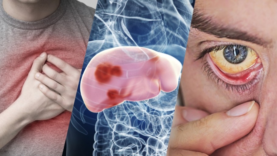 - 황달 (피부와 눈이 노랗게 변함)