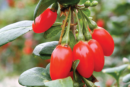 구기자나무의 열매인 구기자는 8~9월에 수확해요. 중국이 원산지로 알려진 구기자는 진시황이 불로장생을 위해 먹었던 음식 중 한 가지로 3대 명약으로 알려져 있습니다.