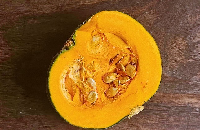 단호박은 손으로 들어보았을 때 느낌이 묵직하게 날 정도로 크기에 비하다 보면 무거운 것이 속이 알차고 좋아요. 그리고 표면에 윤기가 나는 것과 상처가 없어야 하는 것을 고릅니다. 반을 잘랐을 때 속이 진한 황색을 띠고 과육이 두껍고 촉촉한 것이 좋아요.
