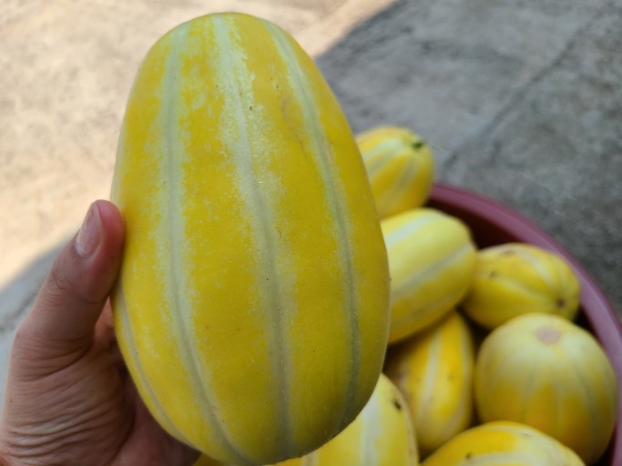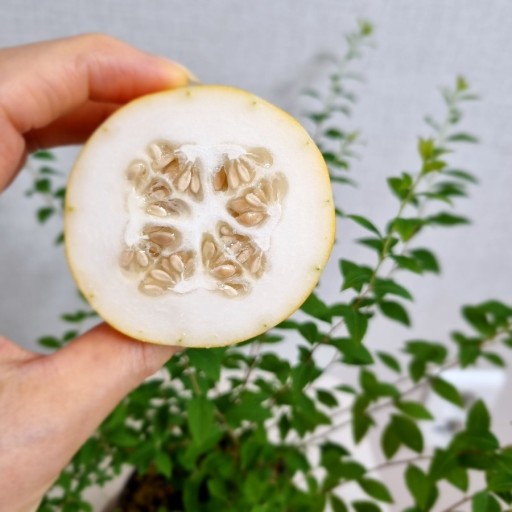 반으로 갈랐을 때 참외의 속과 씨앗이 양옆으로 퍼져 있는 것이 맛 유익한 참외라고 한다.